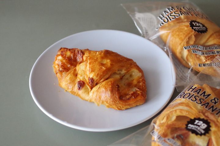 そのまま自然解凍して食べられて、パッケージそのものもオシャレなので、職場へランチとして持っていくのもいいかも。すぐに食べたいときは電子レンジで軽く温めて。トースターで焼くと、クロワッサン生地がカリッとしておいしさがアップ! ハムとチーズの間違いない組み合わせは語るまでもなく絶品なことと、1つのパンにプロテインが12g含まれているそうで、その点も必見です。
