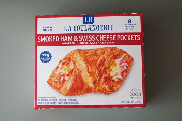 クロワッサン生地に、スモークハムとチーズをサンドしたパンを冷凍コーナーで発見。パッケージが可愛くて目を引きます。8個入りで個包装になっているので、冷凍庫にしまうときは箱を取って保存すると収納しやすくなります。