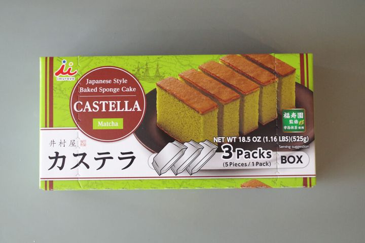 常温で保存しやすい『井村屋』のカステラから抹茶味が新登場。カステラは別ブランドのものも売っていますが、『井村屋』のカステラは3パックに分けられているので食べやすくておすすめ。ちなみに逆輸入されたカステラのようで、英語でカステラの説明が書かれていました。