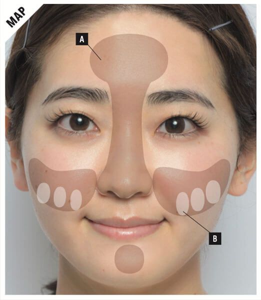 赤みとテカリが出る人は、体温が高い人が多く皮脂崩れもしやすいのが特徴。皮脂防止下地とカラーコントロール下地を使って、テカリも赤みもファンデの前にカバー。ファンデもお粉もこすらず刺激を最小限にするのもポイント!