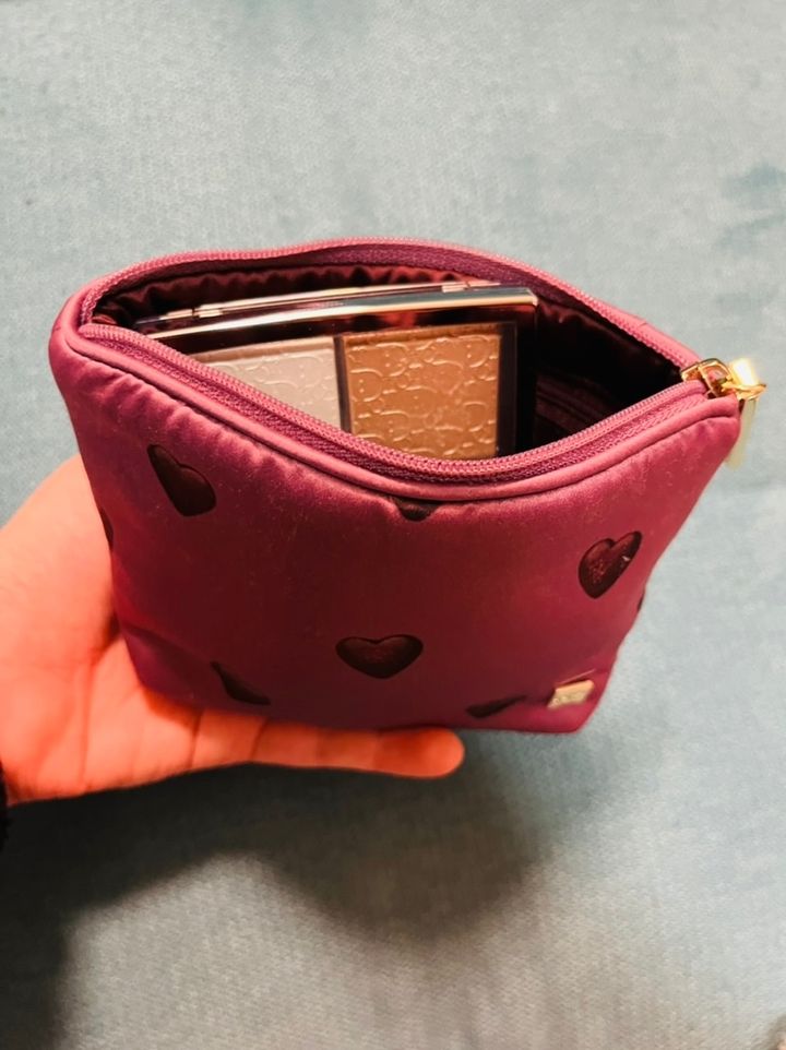 ポーチの中身はクッションファンデ、アイシャドウ、アイライン、ハイライトなどを入れています!!!