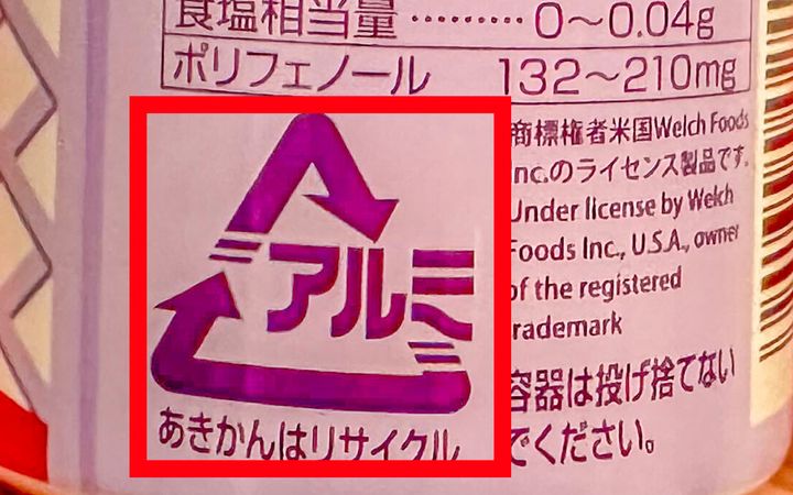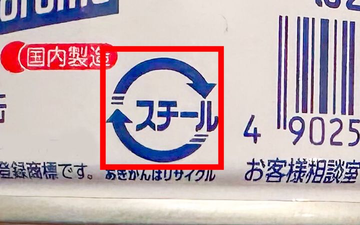 アルミ缶とスチール缶が分別しやすいように、それぞれの材質が飲料容器の表面に表示されています。