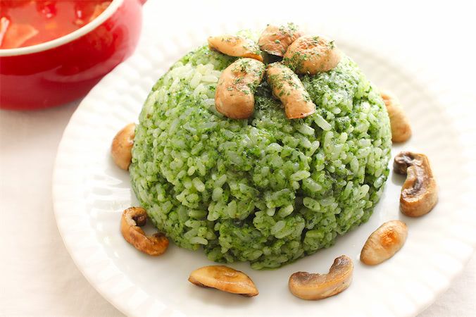 ほうれん草をペーストにしたことで、ご飯が均一に鮮やかな緑色になっていますよ。刻んだほうれん草ではこんなにきれいな色にはならないですよね♪
