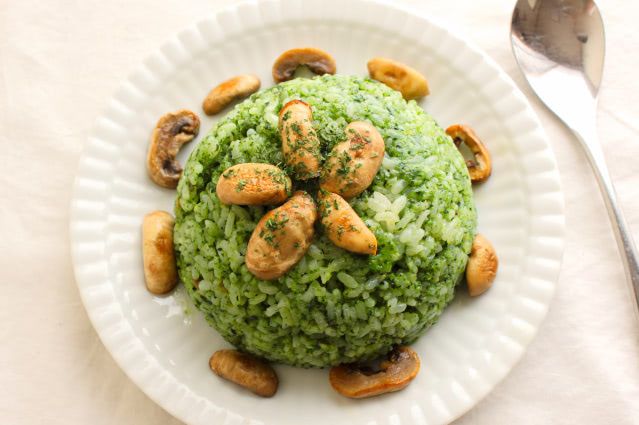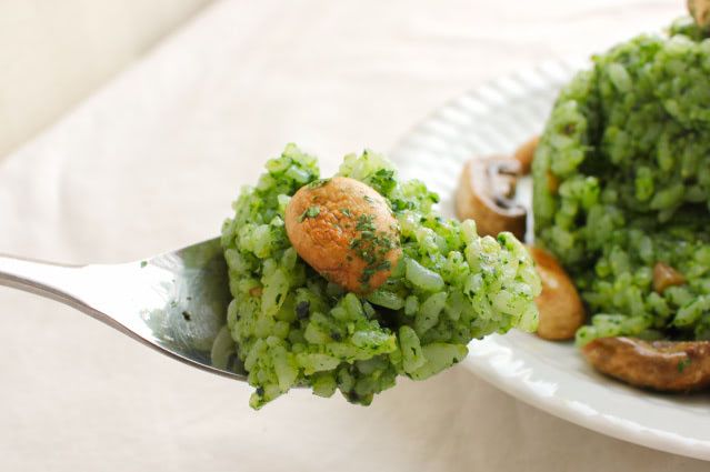 ところが、食べてみると…ん?オリーブオイルの味しかしない…。見た目を裏切るかなりヘビーな味わいです。ほうれん草のペーストを作るのに45gものオリーブオイルを使っているので、当然と言えば当然ですよね…。ご飯も油をたくさん吸っているからか、もっちりと重たい。