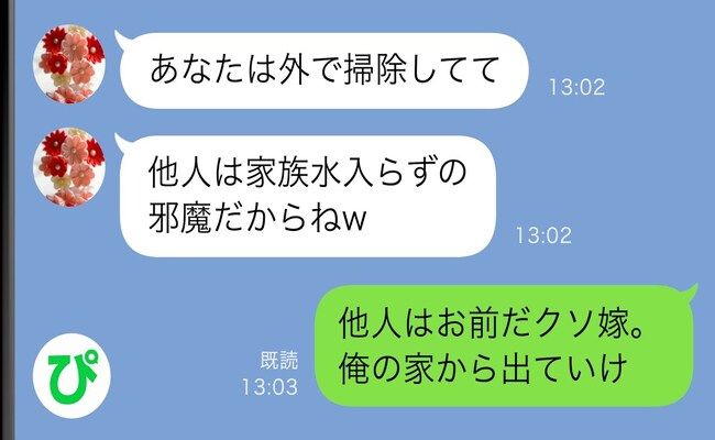 「他人はお前だクソ嫁。俺の家から出ていけ」