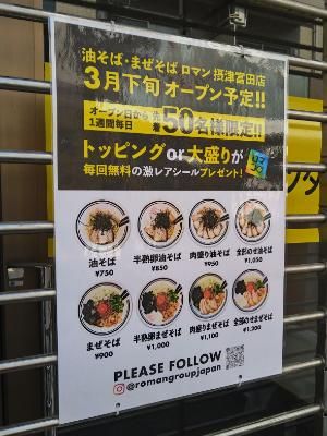 3. 【開店】高槻・JR摂津富田近くに「油そば・まぜそばロマン摂津富田店」2024年3月下旬オープン予定!