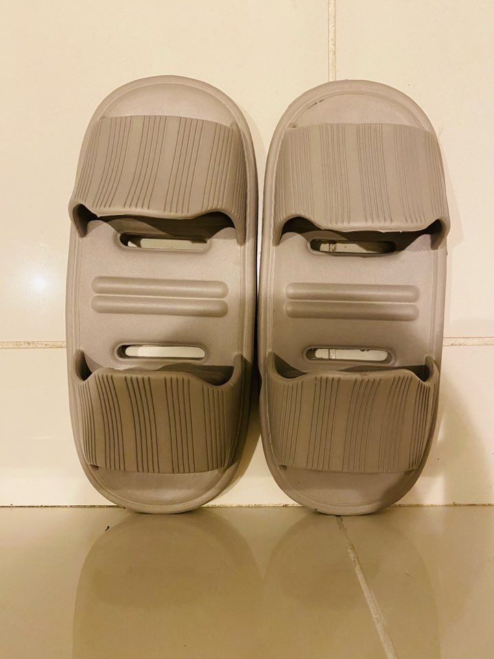 こちらの商品は前後どちらからでも履ける軽量のスリッパで、かかと部分を踏むようにして履くみたいです。色は[アイボリー]と[グレー]の2種類で私は[グレー]を購入。