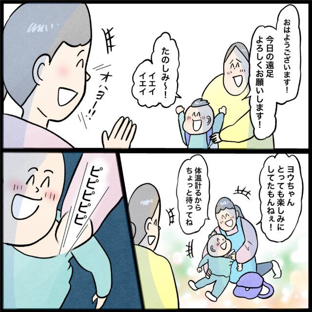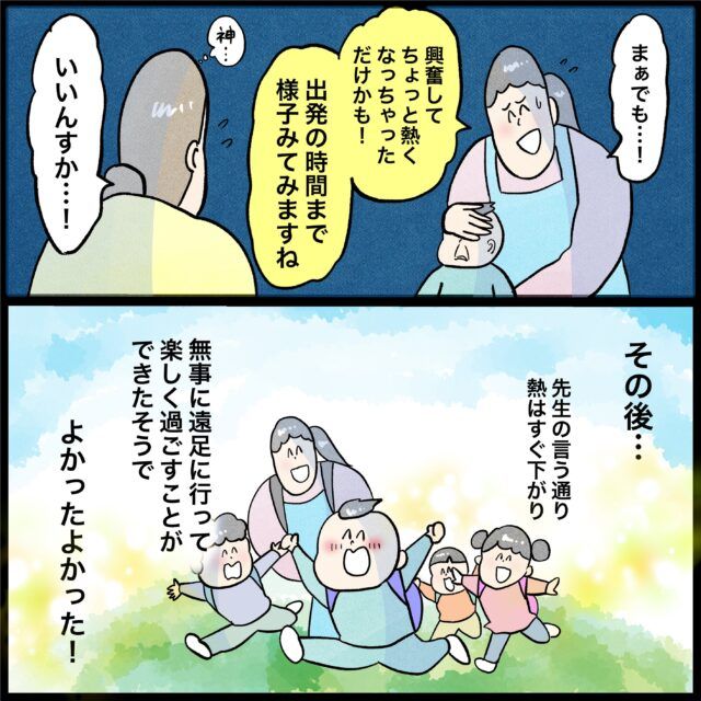 う、嘘やろ・・ワクワクからの急転直下!保育園の遠足当日にまさかの発熱(汗)|はんままの子育て絵日記