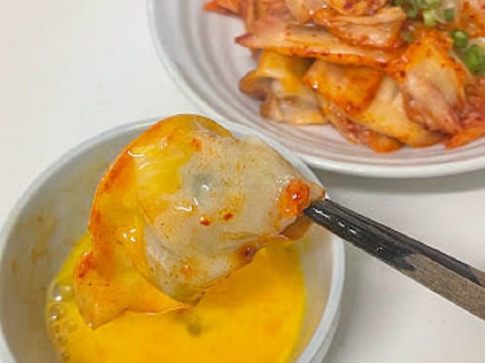 2023年12月20日のテレビ番組『ソレダメ!』では、コストコ商品&最強レシピ!2023冬という特集を放送。その中で料理研究家リュウジさんの「ギョウキム」が紹介されていました。冷凍餃子とキムチを使った時短レシピみたい。キムチは炒めると甘みが強くなり、よりおいしく食べることができるんだとか。さらに溶き卵につけて食べると絶品だそうで~す。どんな味わいになるのか気になる~!