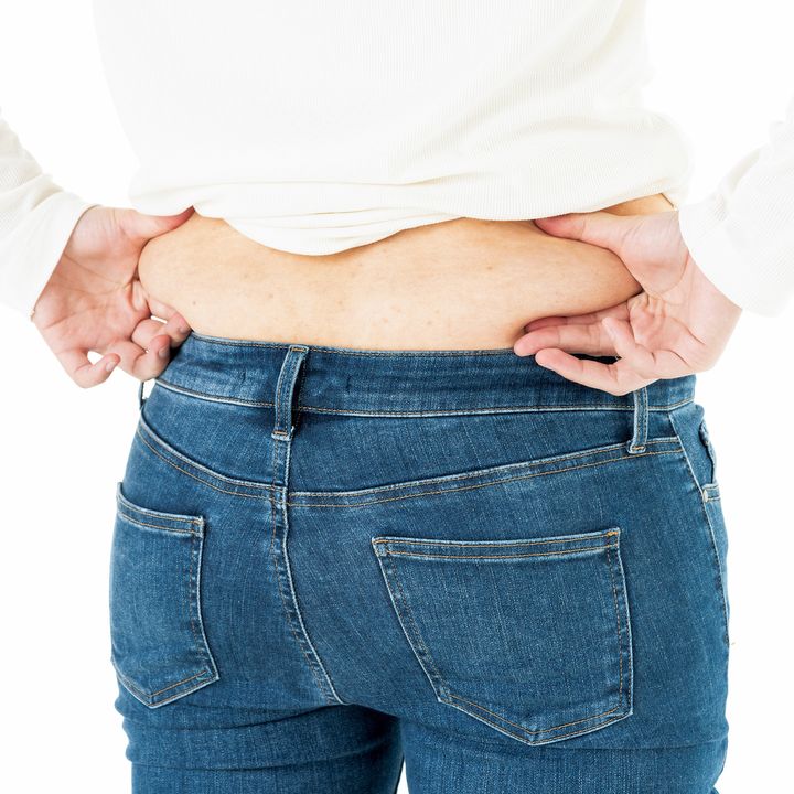 パンツにドデーン!と、のっかるお肉が腰肉です。摑めてしまったら要注意!四隅の上の部分のお肉がある証拠。