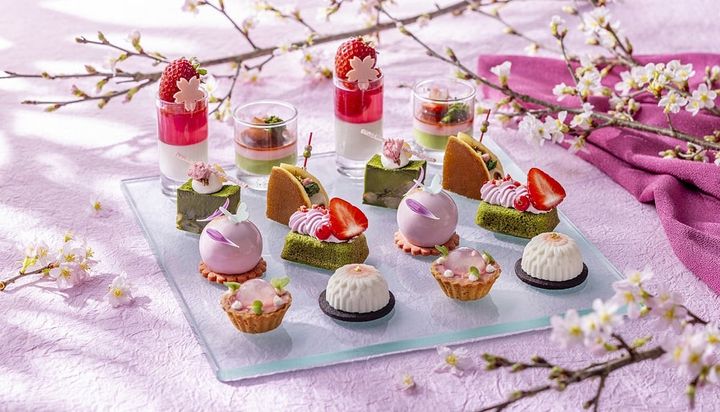 提供されるのは、「桜団子」や「桜のパンナコッタ」など、桜をイメージした華やかな桜色のスイーツ。「旬野菜の盛り合わせ 桜シーザードレッシング」など春らしいセイボリーも登場予定です。心躍る春を彩るアフタヌーンティーで、華やかなひと時をお過ごしください。