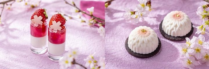 写真左:「桜のゼリーと杏仁豆腐のヴェリーニ」/写真右:ゆずのジュレといちごのゼリーが閉じ込められた「木頭柚子といちごのレアチーズケーキ」(画像:コンラッド東京リリース)