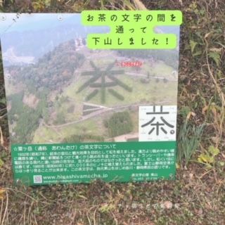 山頂で温かい静岡おでんを食べて、『お茶文字』の間を通って下山しました。