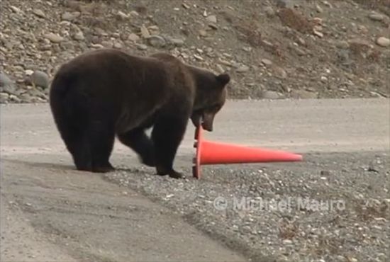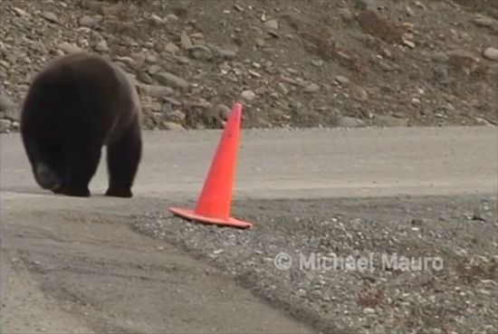 3. 【熊界一の紳士熊】素晴らしいマナーの熊が発見される!さりげなくカラーコーンを直して去っていく姿は正に紳士!!
