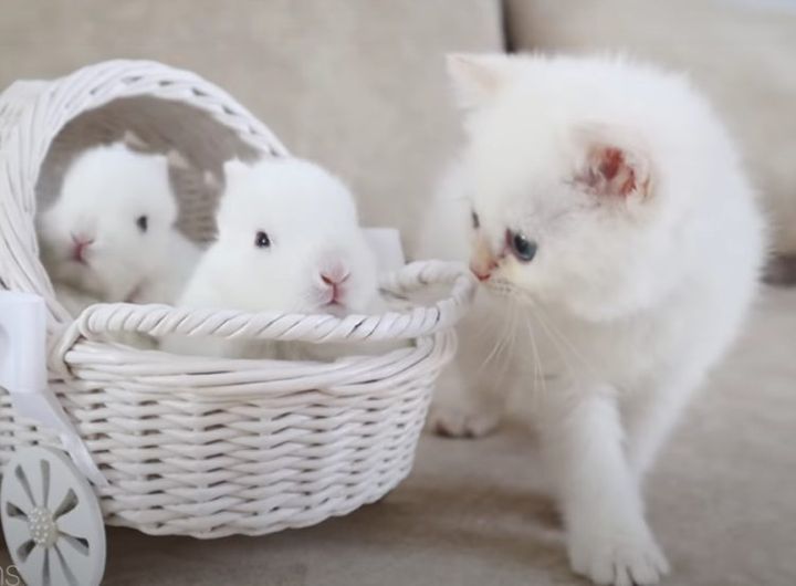 3. 真っ白仲間だよ! モフっと可愛い、子猫と子うさぎ。