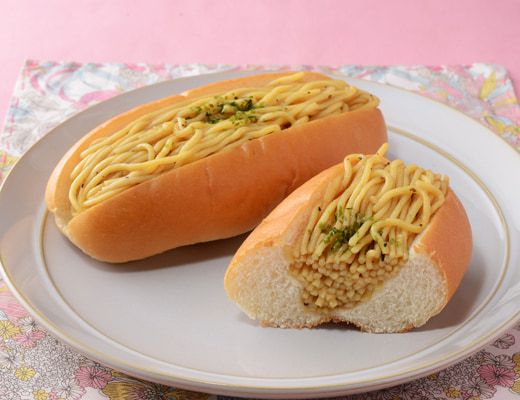パンにたっぷりと挟まれているのは焼きそば。塩焼きそばの入った珍しい焼きそばパンです。ボリュームもあってうれしい!