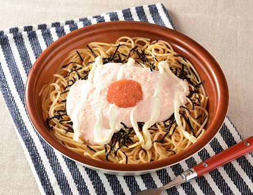 明太子×マヨネーズを組み合わせたピンクのソースが可愛いパスタ。大盛りの麺で思う存分明太子を楽しみましょう!