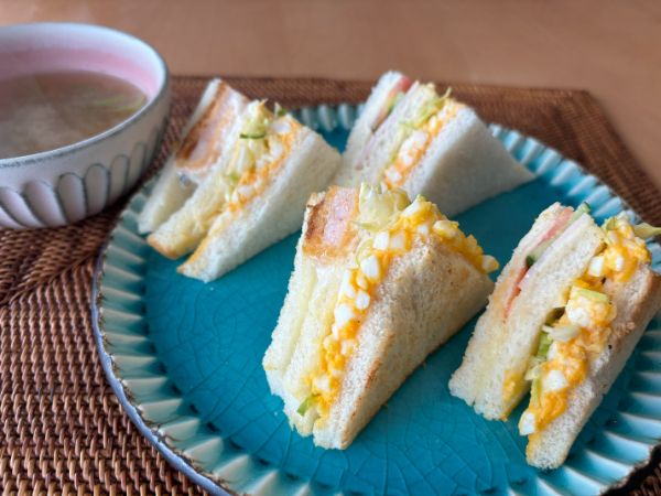 寺尾さんはカットした面の美しさ(今で言う「萌え断」)が好きでサンドイッチ屋を始られたことから、見た目がきれいで飽きの来ないサンドイッチを提供されています。また、「三景屋」の乳化剤・防腐剤不使用の食パンを使うことで安心して食べられ、毎日食べても飽きが来ないようにできるだけ素材を活かしたシンプルな味付けにこだわっていらっしゃいます。