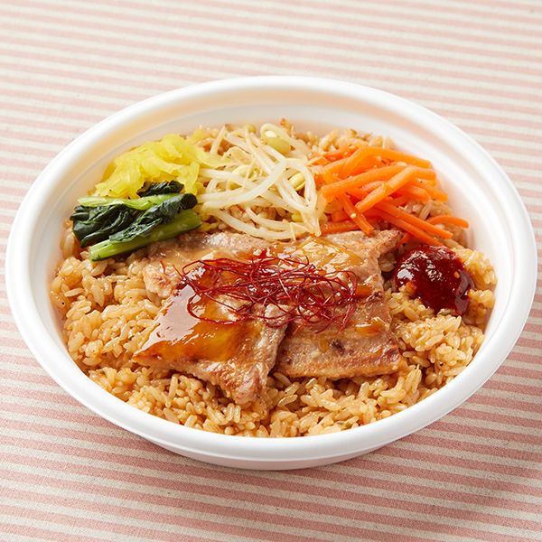 甘辛な味付けが後を引きそうな「ビビンバ炒飯&サムギョプサル」。コチュジャンや豆板醤が効いたビビンバ炒飯と、ごま油香るサムギョプサルで韓国気分を味わっちゃいましょう!