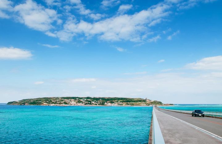 古宇利島へ渡る際は、名護市から島へかかる古宇利大橋を利用。橋へ近づくにつれて少しずつひらけてくる海へと続く景色に期待が高まります。
