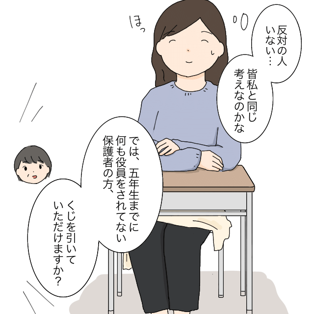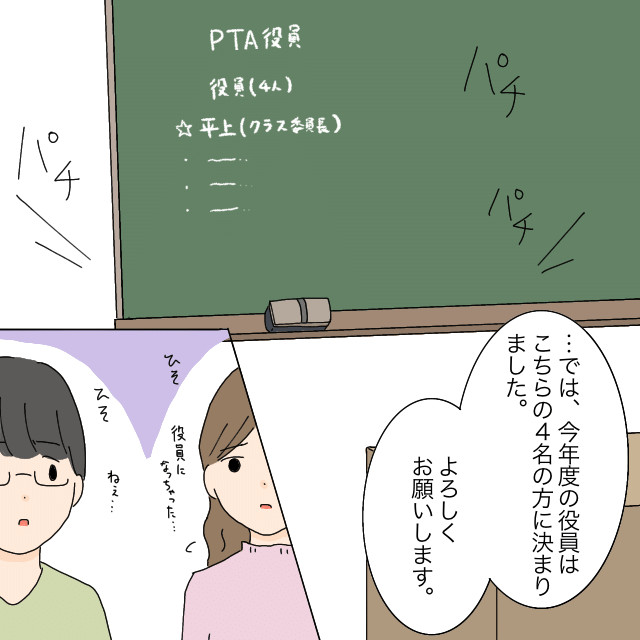 6年生ゆうくんのママひかるさん、新年度になりPTAの役員決めをすることになりました。5年生の時に役員を務めたひかるさんは、先生に役員決めの案をたずねられ、公平性から5年生までに役員をされた方以外のお母さん方から選出してはと提案したところ・・