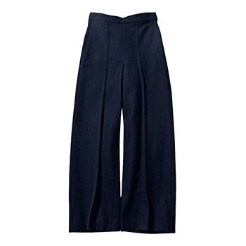 「スーパー100」と呼ばれる細い繊維の糸で仕立てた上質なウール。体の動きを邪魔せず、肌あたりもなめらかで心地よくストレスなく穿いていられる。ゆったりととった余白により、細い脚をイメージさせるワイドフォルム。生地にしっかりと厚みを持たせることでボディラインを拾いにくく、気になる脚線もカバー。