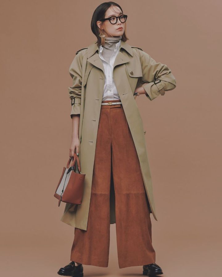 トレンチコート¥97,900(トラディショナル ウェザーウェア/トラディショナルウェザーウェア ルミネ有楽町店)シャツ¥37,400(サクラ/インターリブ)ニット¥40,700(スローン/ザ ショップ スローン 新静岡セノバ店)パンツ¥85,000(バナナ・リパブリック)バッグ¥185,900ローファー¥116,600ベルト¥53,900(す