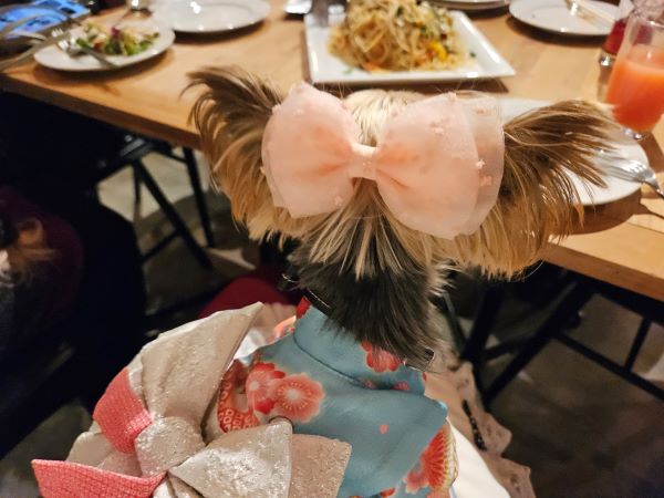 貸切パーティーでしたので、店内に愛犬用セルフ撮影ブースが設置されていました。ひな祭りの時期でしたので、お雛様の撮影ブースです。 貸切利用の際には、店内の飾りつけも可能です。誕生日お祝いの飾りつけや、お子さん連れパーティーの場合は子供用撮影ブースを設置するなどがオススメです。装飾についても、ぜひお店の方に相談してみてください。