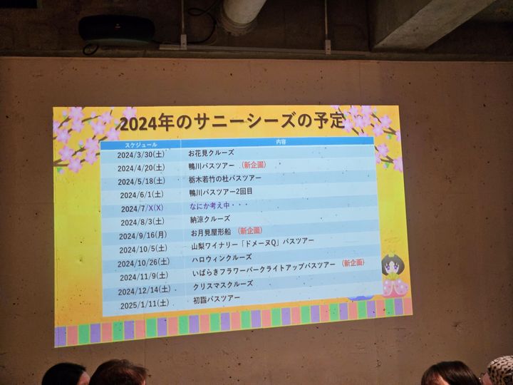 参加したランチパーティーでは、プロジェクターを使って今後の愛犬同伴イベントツアー日程の発表などがありました。結婚式二次会や誕生日会で思い出の画像を映しても良いですね。