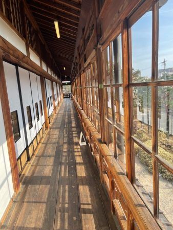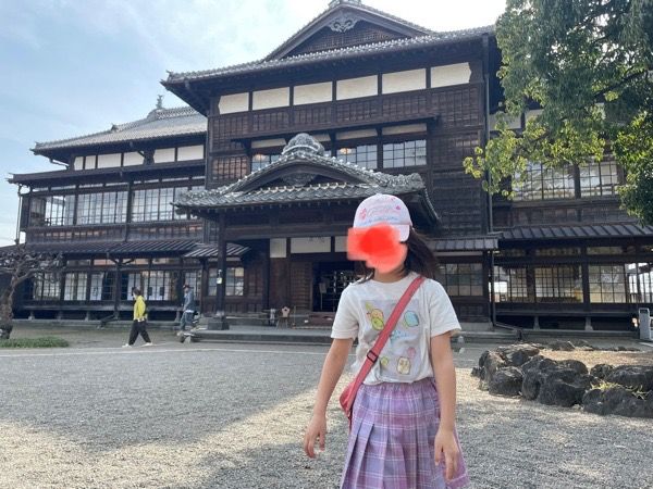 そして、外でも写真を撮りました!こちらは別館の正面玄関となります。 建物の中はその他にも素敵な和の雰囲気を味わうことができるスポットがたくさんありますよ。 皆さんのお気に入りを見つけてくださいね。ただ、広い館内は急な階段も貴重な文化財もありますから、気を付けて見学されてくださいね。