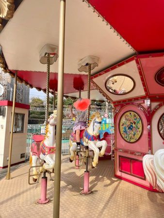 臨江閣の道を挟んですぐお向かいにはレトロな雰囲気の遊園地「るなぱあく」もあります。小さくて昔ながらの遊園地は小さい子連れにオススメのスポットです。 我が子も臨江閣で立派な建物を見学した後は、前橋公園で走り回り、そのあと、るなぱあくで遊びつくしてもまだまだ帰りたくなさそうでした。