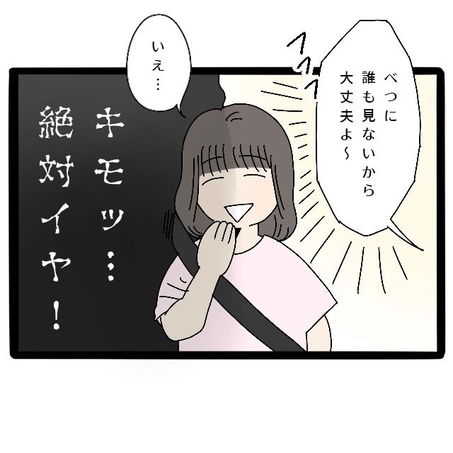 無理やり笑顔を作りながらも、絶対にイヤだと心の中で叫ぶかなこさんです。