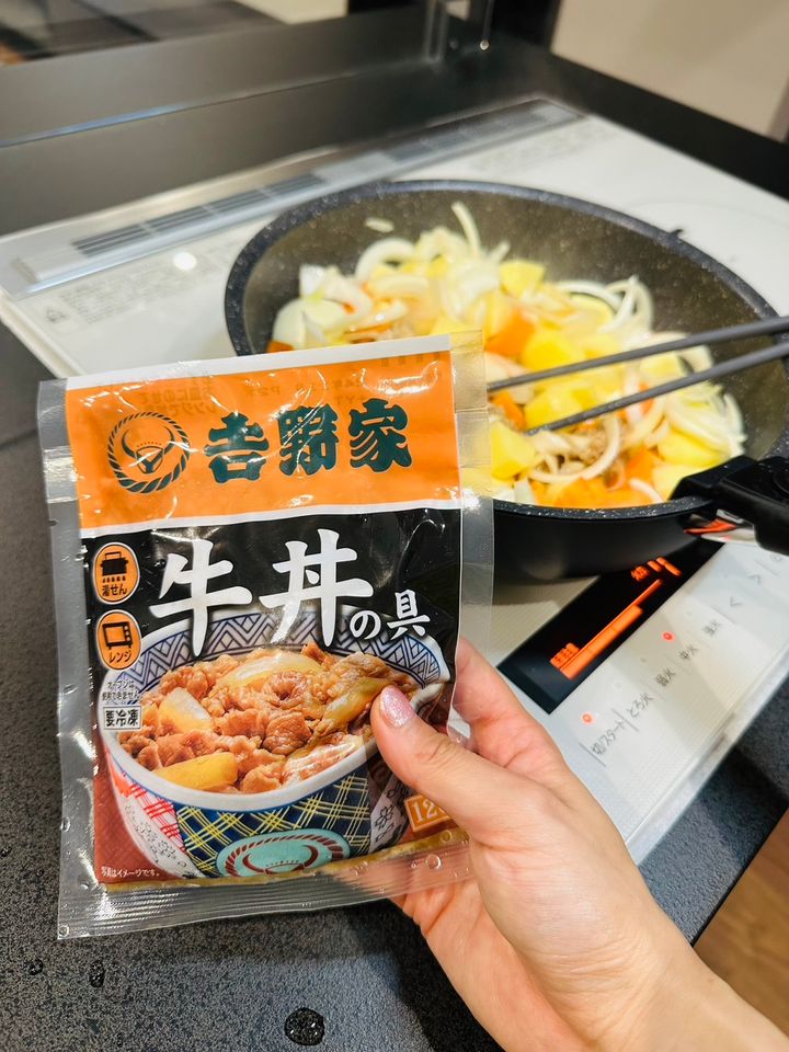 今回はこの冷凍の牛丼の具で簡単に【肉じゃが】を作ってみました!!