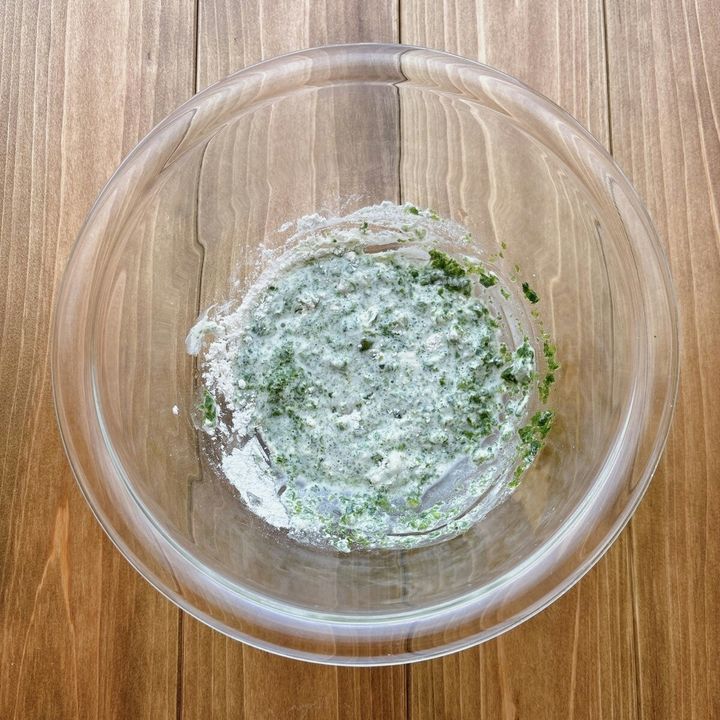 ★をさっくり混ぜ合わせて衣を作る。粉っぽさが残っていても大丈夫です。