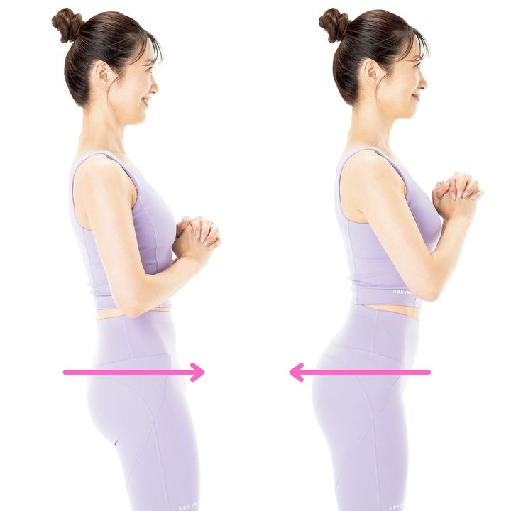 腰回し同様、上半身の軸を固定させるのがポイントになります。腰だけ前後に突き出す感覚で動かします。
