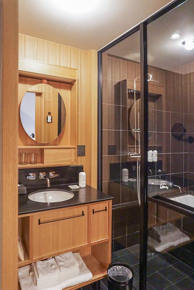 浴室は完全独立型で、浴槽付き。日本の一般的なお風呂と同じように使えます。広さも余裕がありノンストレス。外資系のカジュアルホテルとしては、かなり使用感にこだわった設計であることが伺えます。