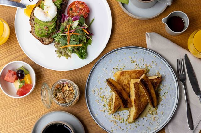 2020年6月のホテル開業と同時にオープンした、イタリアンレストラン「ミスター・モーリスズ・イタリアン」と、バー&タコスラウンジ「ピオピコ」に加えて、新たな選択肢が増えました。2023年8月、満を持してメインダイニング「KŌSA(コウサ)」がオープン。現在、エースホテル京都の朝食は、こちらでいただくことができます。