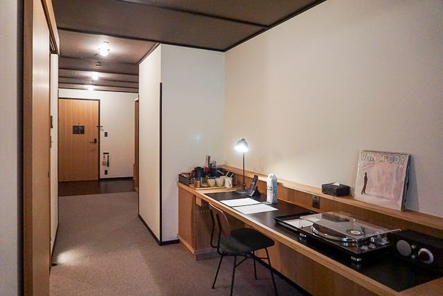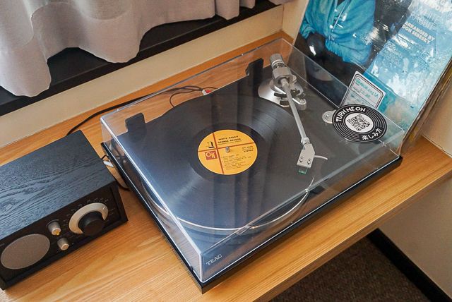 エースホテル京都では、全客室に「Tivoli」のラジオと、「TEAC」のターンテーブルが設置されています。隣に立てかけられた数枚のレコードから気分にマッチした一枚を選び、そっと針を落としてみる。やわらかな音が広がる空間、そしてこの一連の体験こそが、「エースホテルらしさ」の解像度をぐっと上げてくれるはず。