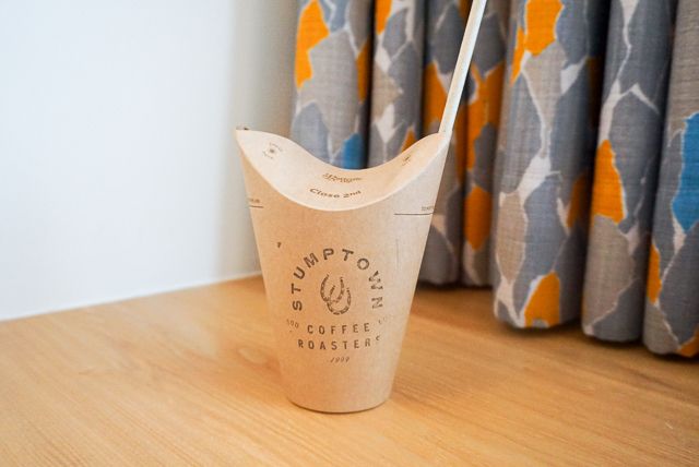 ルームアメニティのコーヒーもよいけれど、もうひとつおすすめの選択肢をご紹介。エースホテル京都の1階には「スタンプタウン コーヒー ロースターズ」が入っています。アメリカのエースホテルにも入店しているので、エースブランドの日本上陸とともにやってきたわけですね。こちらが日本一号店です。