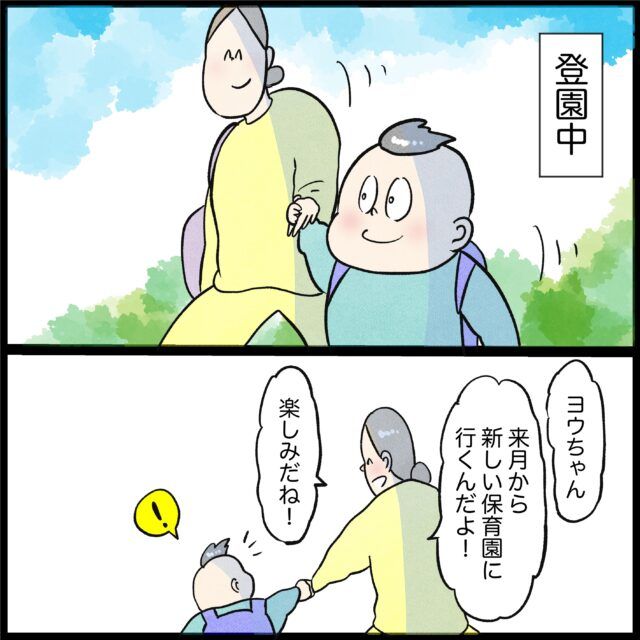 えー!なんというタイミングで・・・(笑)でも、ヨウちゃんは本当はお別れが寂しくて涙が出たことを誤魔化したのかもしれませんね。転園は寂しいですが、新しいお友達との出会いが楽しみですね!