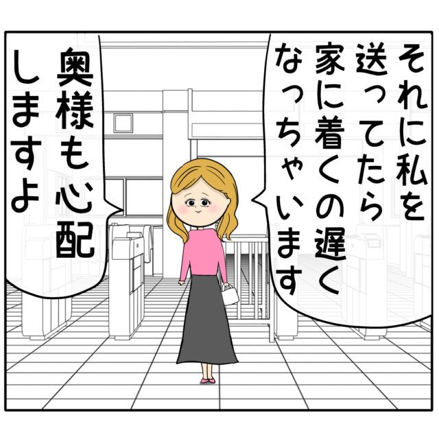 「それに私を送ってたら家に着くの遅くなっちゃいます。奥様も心配しますよ」