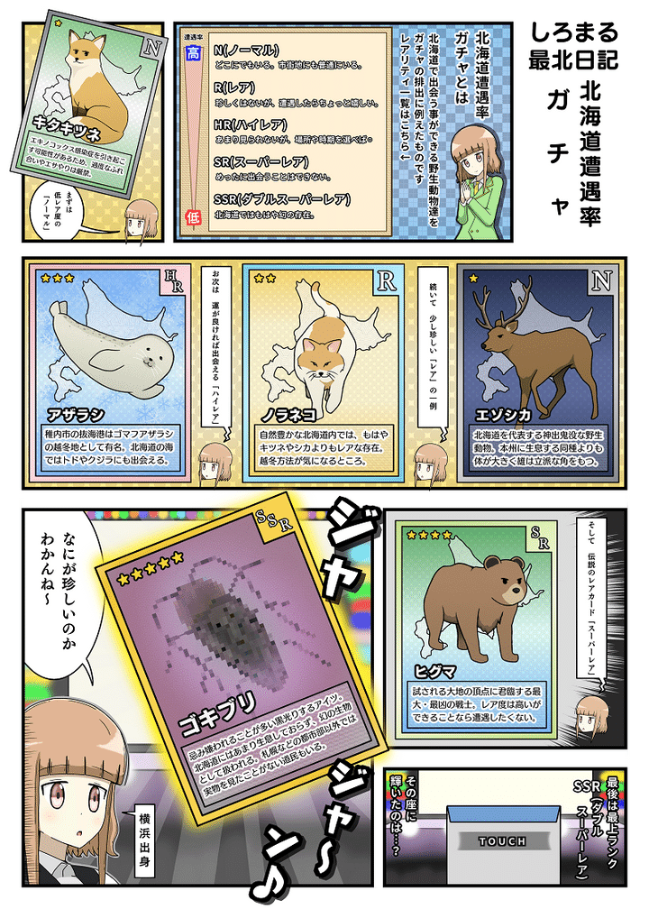 【漫画】実は北海道ではお目にかかれない!遭遇率SSRの”黒光りするアイツ”|しろまる最北日記⑦