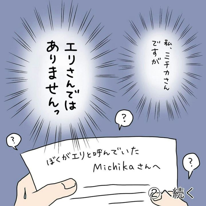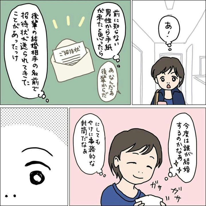 そんなある日、見覚えのない差出人から分厚い手紙が届きます。不審に思いながらも、「結婚式の招待状?」と思い開封してみることに。ところが、宛名を読んでみて、Michikaさんはますます混乱します…。