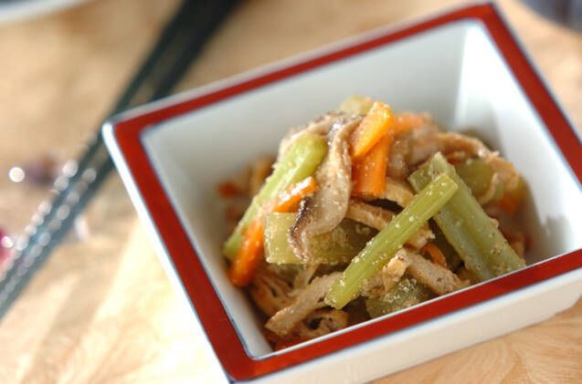新ごぼうは柔らかいので、サッと炒める程度で簡単に作れるきんぴらです。刻み唐辛子がアクセントに。食材はニンジンと新ごぼうがあれば作れるので、忙しい日のお弁当作りに便利です。