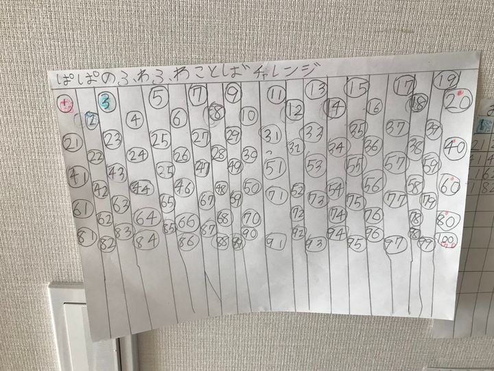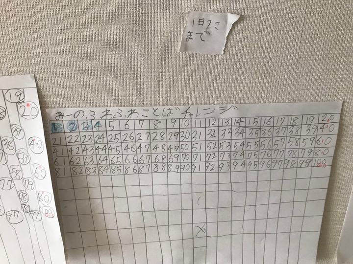 下の娘は壁に貼り出された「ふわふわことばチャレンジ」を見ては、スタンプを押してもらおうと毎日張りきっています。また、姉に「作ってくれてありがとう」と早速ふわふわことばを実践していました。