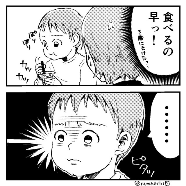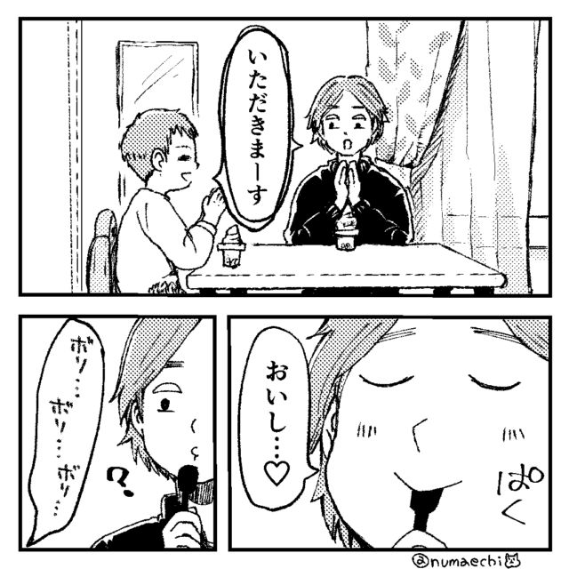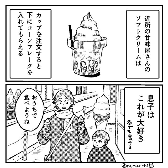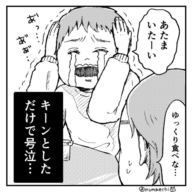 大好きなソフトクリームを食べて号泣!?頭キーンを初体験した3歳息子|ぬまえの育児漫画
