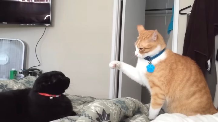 黒猫と茶白猫とのスラップ合戦、16連射と14連射と