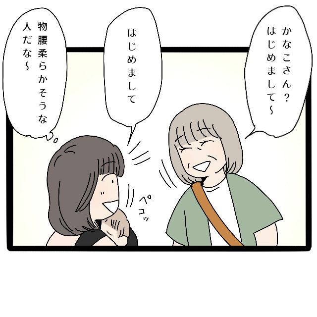 「かなこさん?はじめまして~」と笑顔で声をかけてくれた伯母はとても物腰が柔らかい感じで、かなこさんはホッとしました。