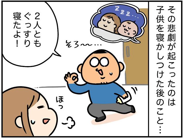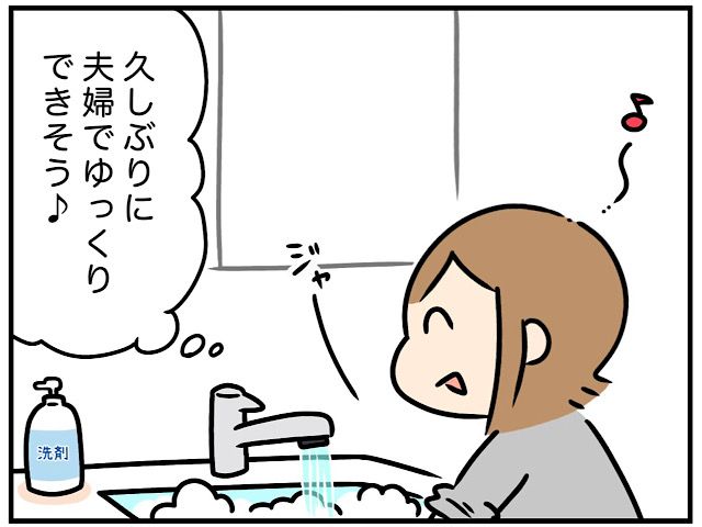 3歳の女の子てんちゃん、1歳の男の子むっくんのママであるなでこさんから、オムツを洗濯機で洗ってしまったお話です。ある夜、珍しく子ども達の寝かしつけが早く終わり、久しぶりの夫婦の時間をゆっくり過ごそうとしていたなでこさん。しかし・・・。
