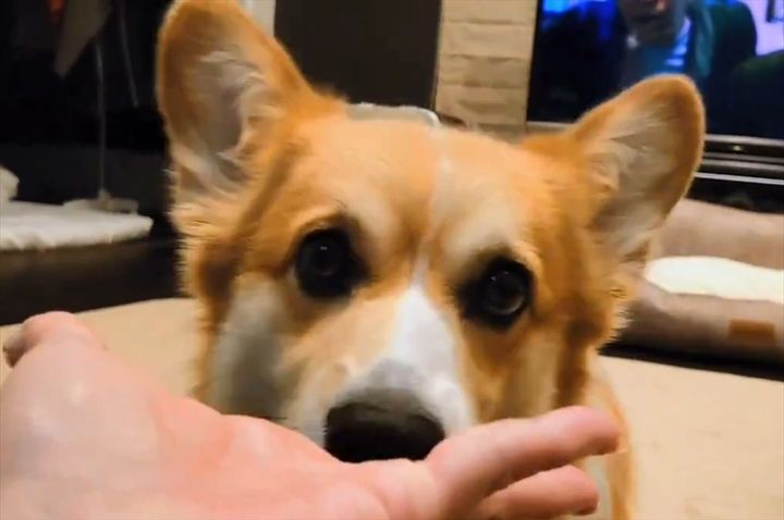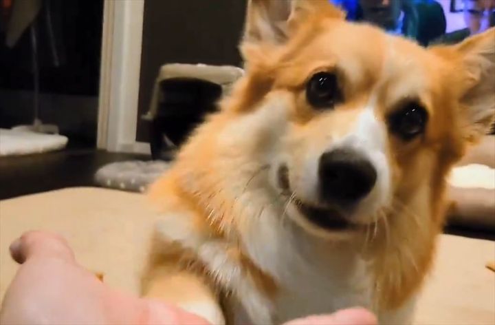 愛らしい顔と短い足が特徴のコーギー。 そんなかわいいコーギーがお手してくれるのですが・・・、ちょっとしたズルをしていました!!